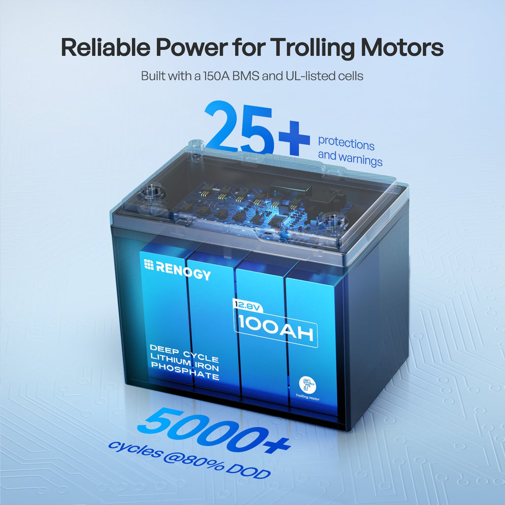 Renogy | Core - 12V 100Ah Trolling Motor Lithium Iron Phosphate Battery with Bluetooth | RBT12100LFP-TM-BT-S-US