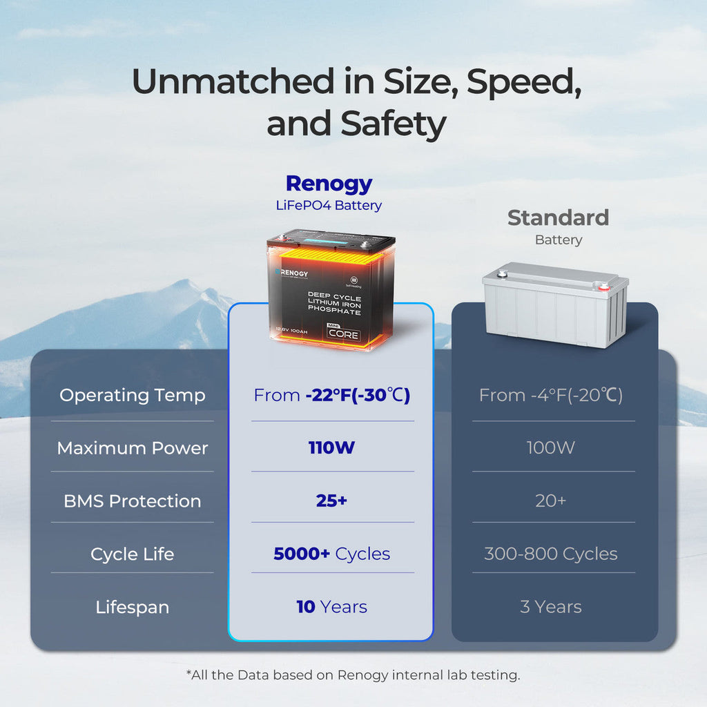 Renogy | Core Mini - DuoHeat Tech 12V 100Ah Lithium Iron Phosphate Battery | RBT12100LFP-H-S-US