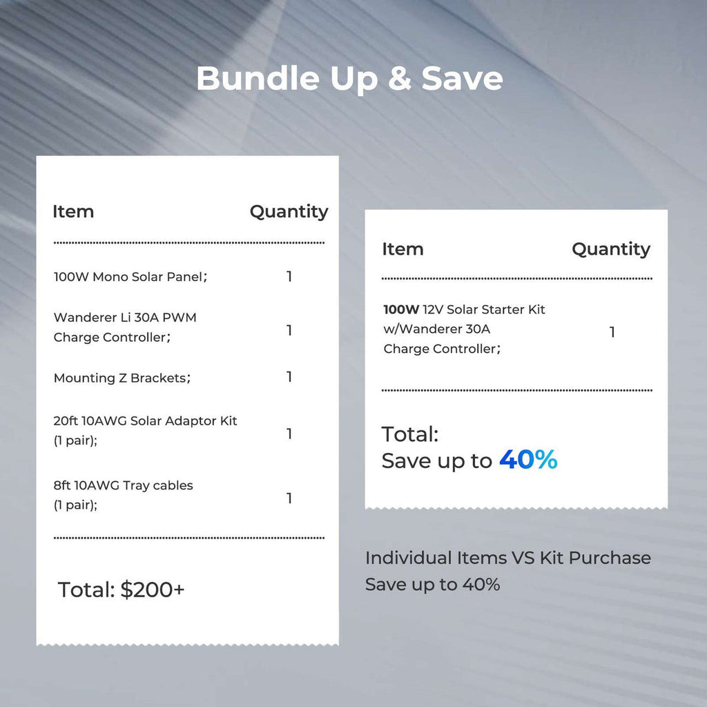 Renogy | Starter Kit N-Type 100W 12V Solar Kit | RNG-KIT-STARTER100D-WND30-US