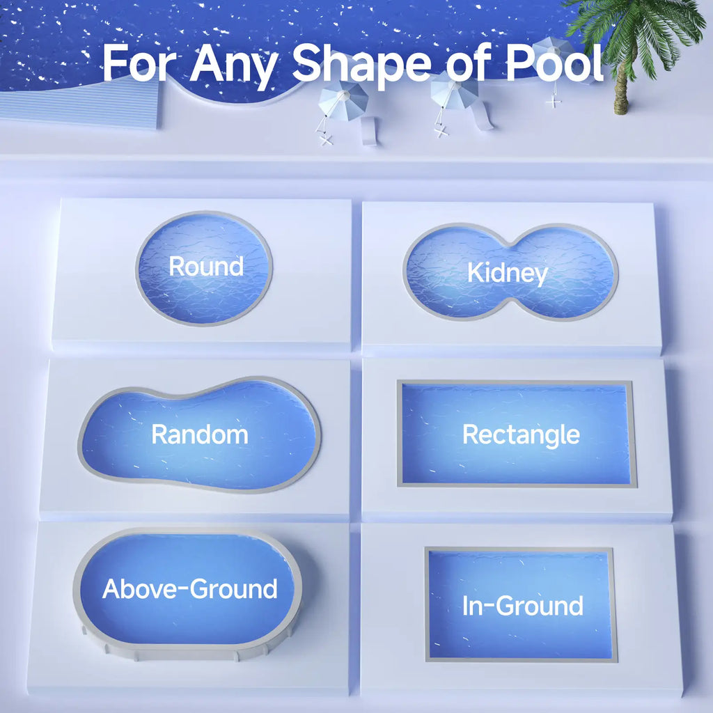 • Advanced Navigation & 4WD Traction: Featuring a smart gyroscope-based navigation system, the cleaner follows an N-path along walls and an S-path on the pool floor, achieving optimized route planning. Combined with four-wheel-drive (4WD), upgraded motors, and PVC traction brushes, it adapts to different pool surfaces such as tile, vinyl, pebble, glass, and mosaic